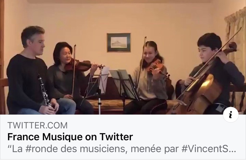 Une très sympathique initiative de France Musique qui pendant la période de confinement “invite” un artiste à se produire de son domicile !