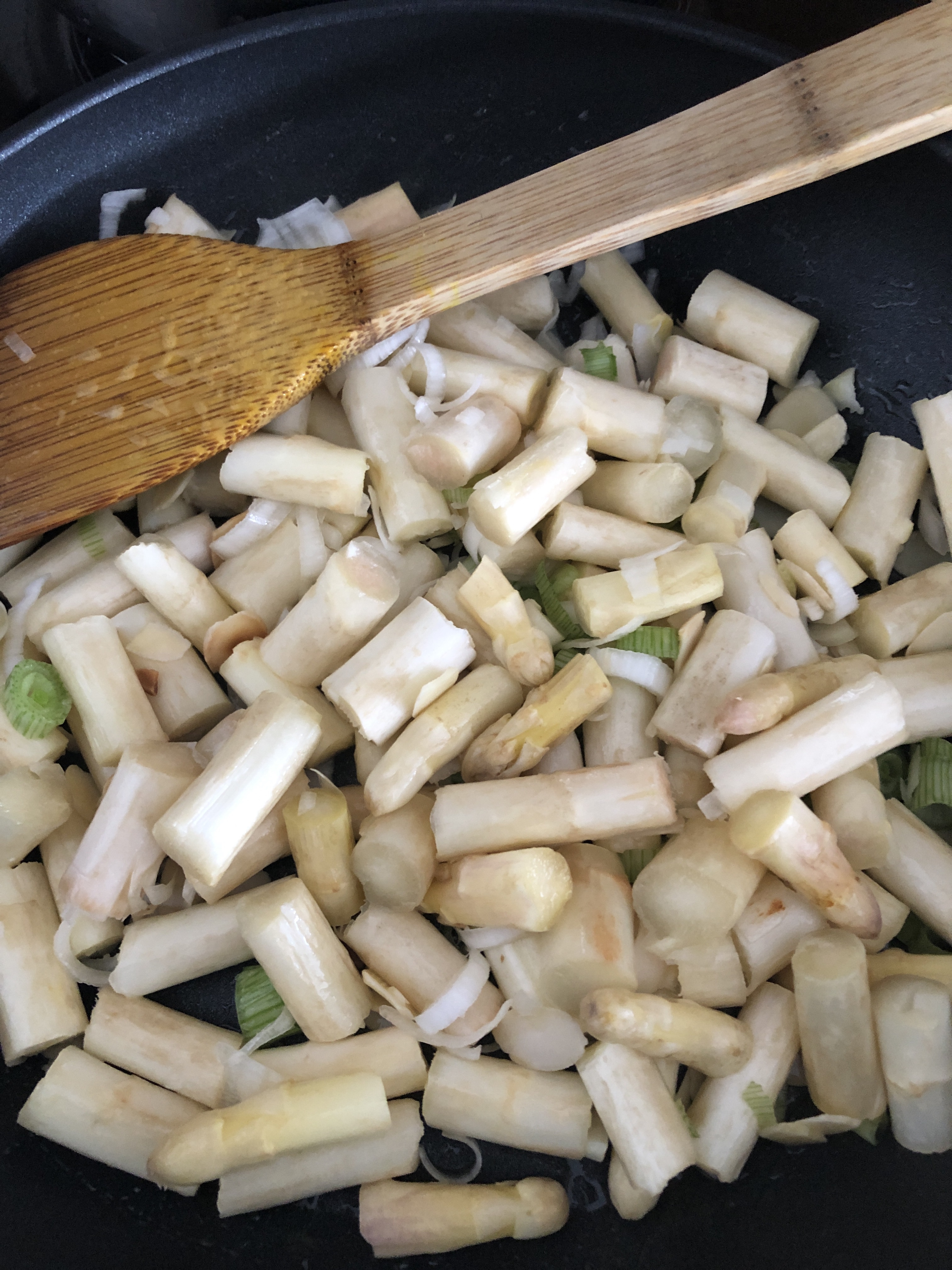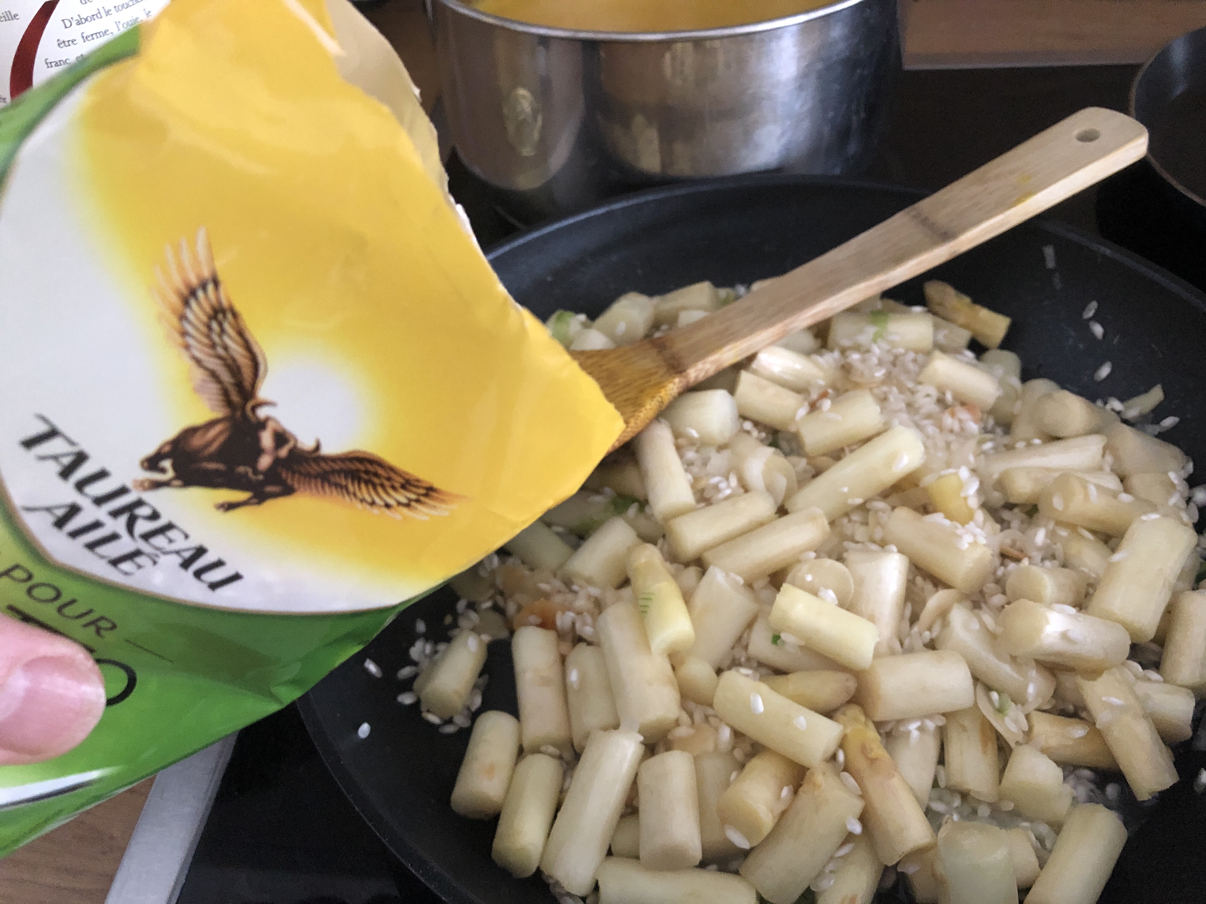 La première recette est basée sur un légume de saison en ce dimanche de mai: l’asperge, et le plat est donc un risotto aux asperges.